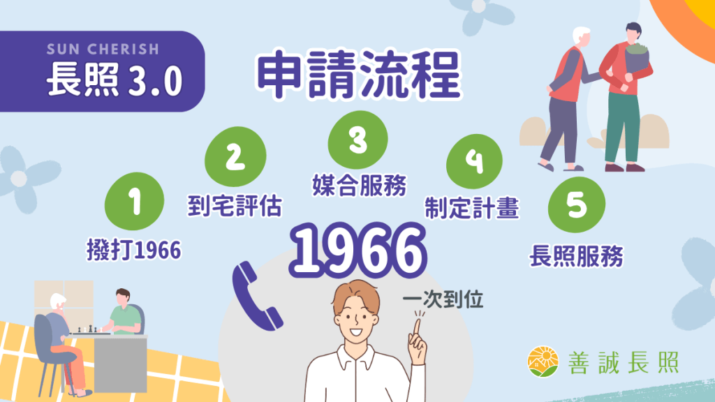需要任何長照服務即可撥打1966, 由照管中心受理。 亦可聯繫善誠長照任何一家居家服務或日照中心協助辦理。