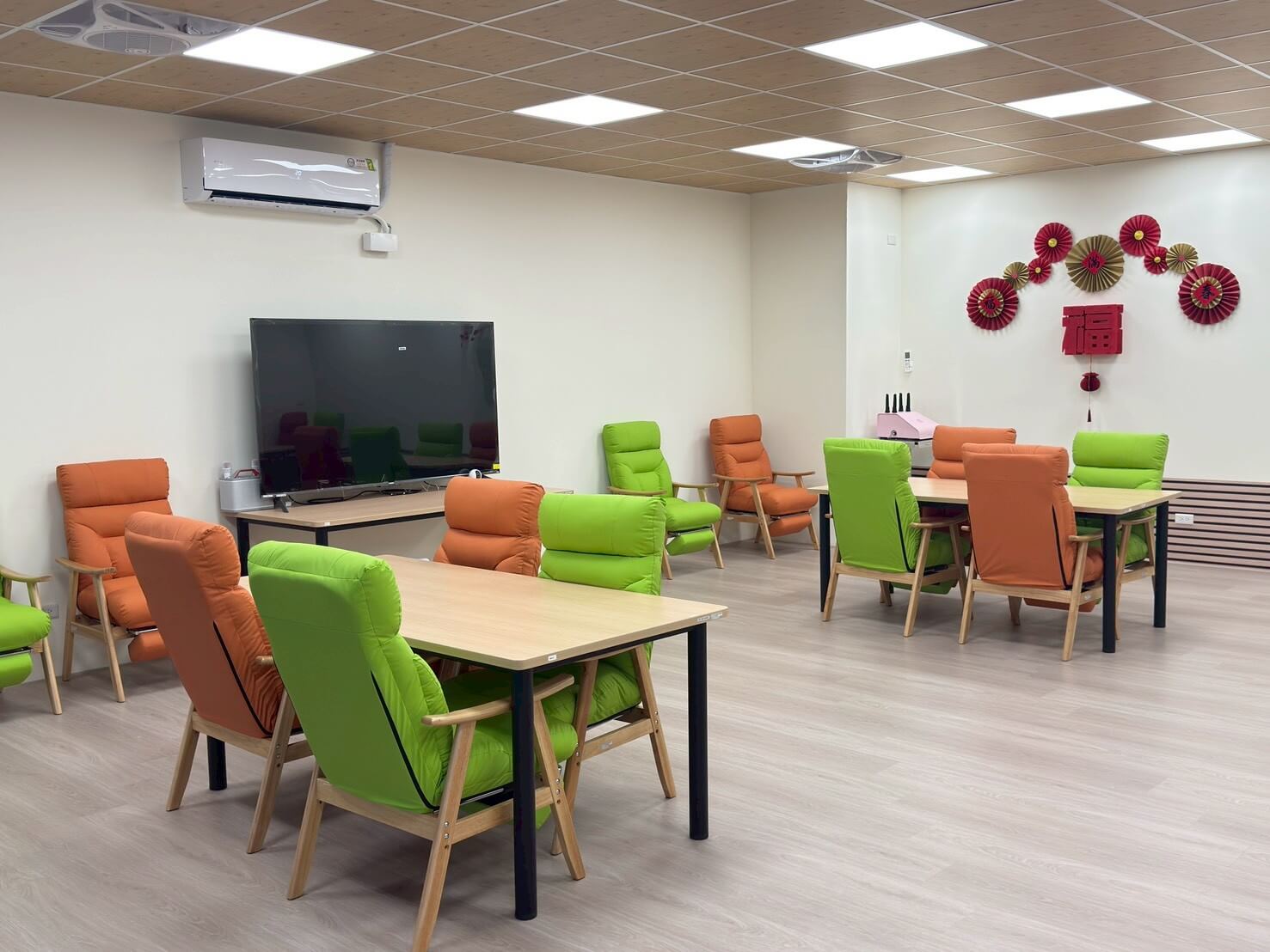 室外擁有景觀漂亮的閒情園地,長輩們可以在此安坐、散步、活動筋骨。善誠林口日照中心結合便利、舒適與專業服務,是林口區優質的長照選擇。